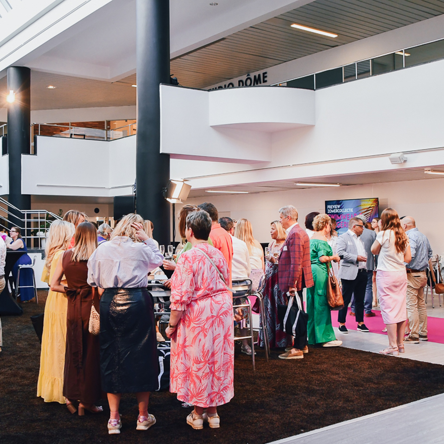 “Cette année, le défilé de lingerie et de maillots de bain a eu lieu chez Trademart. Le grand espace ouvert, avec ses escaliers et sa place centrale pour le public, offrait un cadre idéal pour le show. La lumière naturelle abondante apportait une agréable sensation d’espace. Les participants ont pu se garer facilement et ont été chaleureusement accueillis par l’équipe de Trademart. ”
