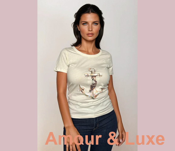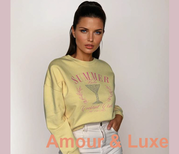 T-shirts en sweaters van Amour&Luxe zijn leuk, flirterig en modieus! Gemaakt van 100% organisch katoen en versierd met kristallen van hoge kwaliteit voor extra glans. Marge van 3 en zeer commerciële prijzen.