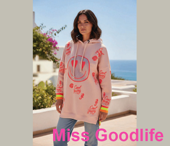 Miss Goodlife is een commercieel aantrekkelijk damesmerk met een frisse, vrolijke stijl én een collectie die snel leverbaar is — perfect om je modeaanbod dynamisch te houden en klanten te inspireren.